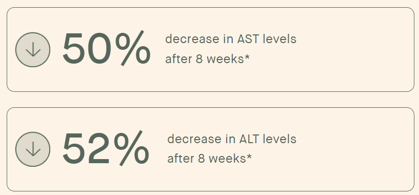 of participants reported a positive impact on liver enzyme levels in 8 weeks*